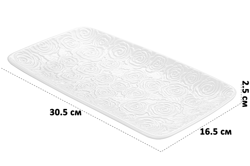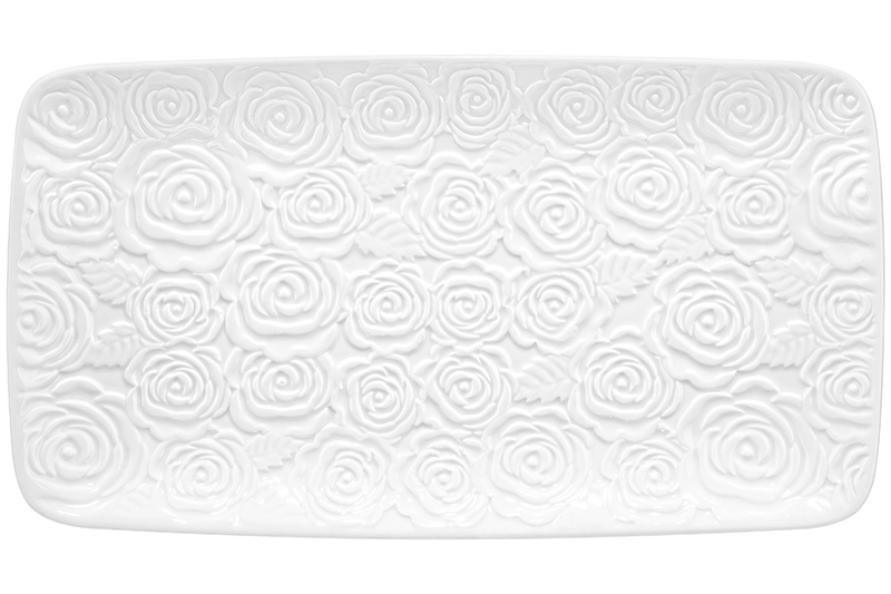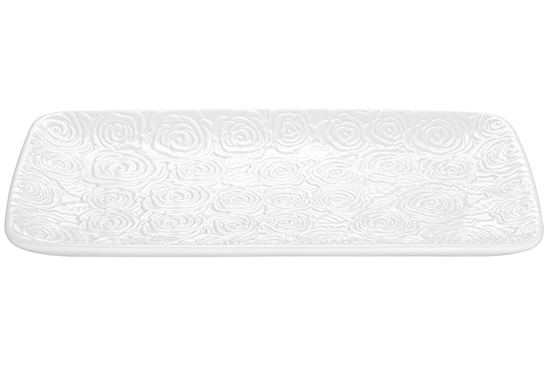 Блюдо прямоугольное 30,5*16,5*2,5 см "Розы" белое