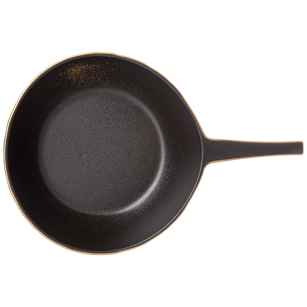 Коллекция "MIDNIGHT GOLD" ТМ BRONCO - это ультрамодная сервировка стола. Черный с золотыми брызгами и окантовкой фарфор. Глубокое матовое покрытие. Каждый предмет коллекции уникален. Тарелки в виде форм для запекания, сковородок, чугунков, элементы поверхности гриль на дне изделий - все это делает Ваш стол неповторимым! Посуда прошла сертификацию. Безопасна для контакта с пищевыми продуктами. С осторожностью использовать изделия в посудомоечной машине и микроволновой печи по причине возможного повреждения золотого декоративного покрытия. Рекомендуется применять мягкие средства для мытья в посудомоечной машине.