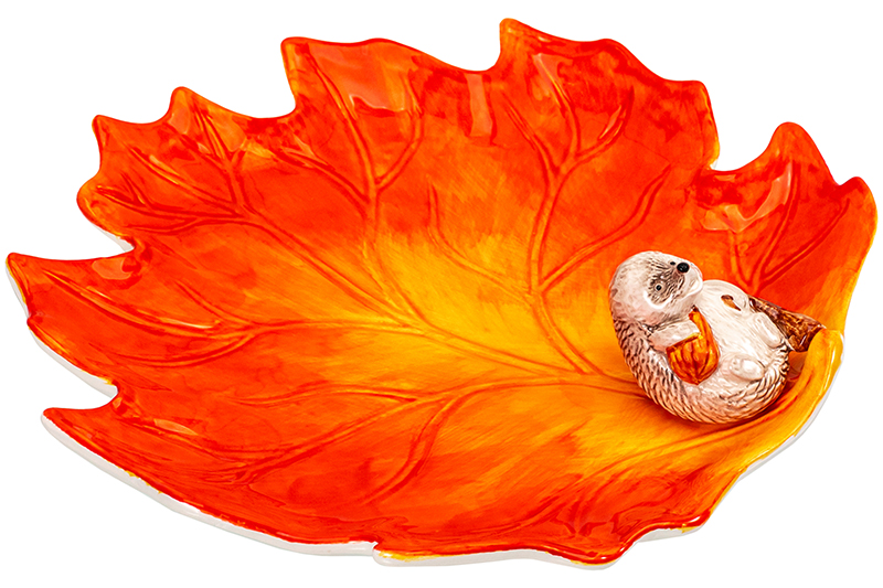 Блюдо из серии «Ёжики» от Elan Gallery предназначено для эстетичной сервировки вашего стола. Размер изделия – 26,5х25,5х5,5 см, размер дна – 18,5х16 см. Выполнено из керамики в виде большого кленового листа, на котором лежит маленький ёжик. Блюдо подойдёт для подачи мясных и рыбных блюд, а также разнообразных закусок. Используйте его для сервировки салатов, сырной нарезки, овощей и фруктов. Оно поможет угостить большое количество гостей. Удобно разместите на фигурной сервировочной тарелке кусочки торта или пирога, конфеты, зефир, а также сладости и десерты. Задействуйте для подачи суши, роллов или бутербродов на завтрак. Благодаря необычному дизайну она разнообразит интерьер кухни, столовой или гостиной, добавив вашему дому уюта. Не рекомендуется применять абразивные моющие средства. Не подходит для использования в посудомоечной машине и микроволновой печи. Поставляется в дизайнерской картонной коробке – благодаря ей вам не потребуется дополнительная подарочная упаковка. Коллекция «Ёжики» от бренда Элан Галерея – это посуда, где каждая деталь создана с теплом и раскрашена оттенками осени!