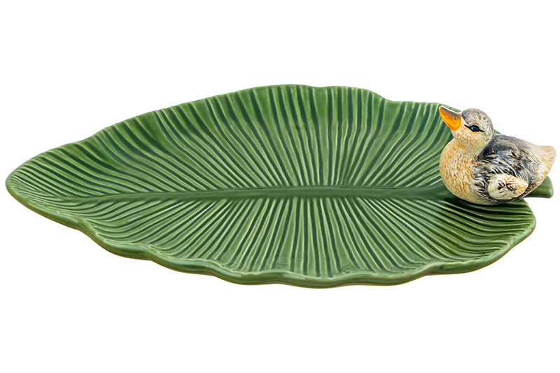 Блюдо «Уточка» от Elan Gallery предназначено для эстетичной сервировки вашего стола. Размер изделия – 29,3х20,5х6,5 см. Выполнено из керамики в виде зелёного листа, на котором сидит маленькая уточка. Подойдёт для подачи мясных и рыбных блюд, а также разнообразных закусок. Используйте её для сервирования салатов, сырной нарезки, овощей и фруктов. Она поможет угостить большое количество гостей. Удобно разместите на фигурном сервировочном блюде кусочки торта или пирога, конфеты, зефир, а также другие сладости и десерты. Задействуйте для подачи суши, роллов или бутербродов на завтрак. Благодаря необычному дизайну сервировочная тарелочка разнообразит интерьер кухни, столовой или гостиной. Добавьте вашему дому тепла вместе с симпатичной птичкой. Не рекомендуется применять абразивные моющие средства. Не подходит для использования в посудомоечной машине и микроволновой печи. Поставляется в дизайнерской картонной коробке – благодаря ей вам не потребуется дополнительная подарочная упаковка. В коллекции бренда Элан Галерея представлен богатый выбор декоративной посуды и красивых сувениров – каждый обязательно подберёт вариант на свой вкус. Они станут оригинальным подарком для родных, близких и коллег. Преобразите пространство вокруг себя, наполнив его неповторимым очарованием!