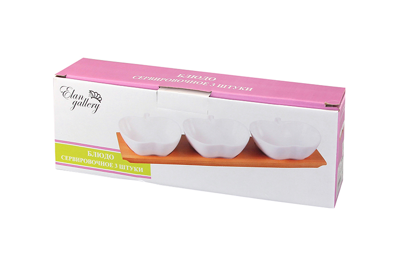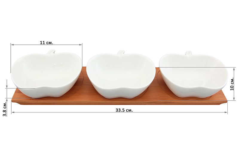 Блюдо сервировочное 3 пр. 33,5*10*5 см 150 мл "Яблоко" на дер. подставке
