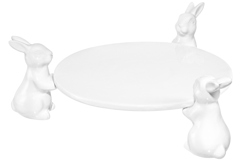 Блюдо сервировочное "Кролики" 30*30*10.5 см, размер блюда 23*23*1 см, размер кролика 5,5*5*10,5 см - каждый, расстояние от стола до нижнего края блюда 5,5 см, фарфор