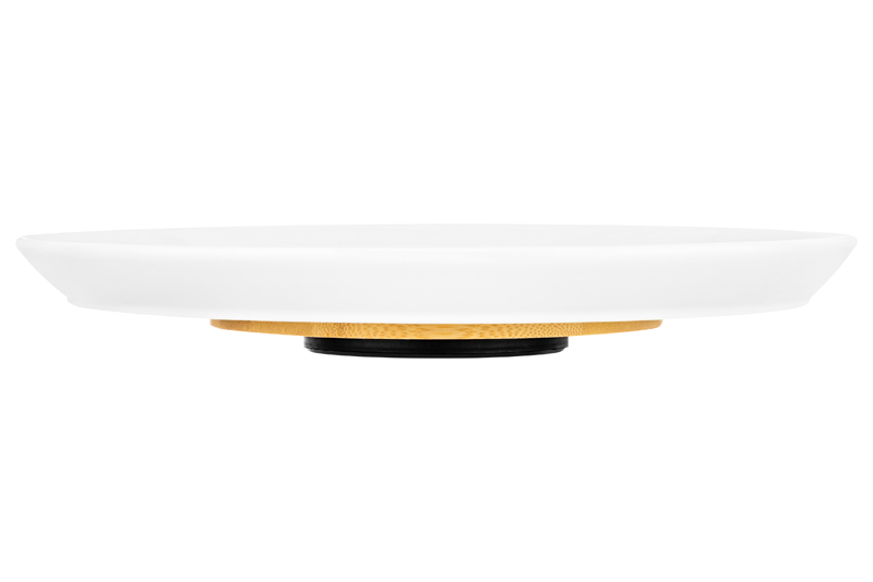 Блюдо сервировочное серии "Айсберг" 33х33х3 см на крутящейся подставке подойдет для сервировки сыра, орехов, разнообразных закусок, сладостей и другой еды. Размер тарелочки вместе с подставкой 33х33х4,5 см. Менажница выполнена из высококачественного белого фарфора, а крутящаяся подставка размером 17,7х17,7х2,2 см – из натурального бамбука и пластика. Фарфоровая посуда отличается от керамики повышенной плотностью. Фарфор не впитывает цвет продуктов и не деформируется от влаги, чему может быть подвержена керамическая посуда. Подставка съемная. Высота блюда на подставке 4,5 см. Нельзя использовать в микроволновой печи и посудомоечной машине. Бамбуковую подставку нельзя замачивать. Набор поставляется в стильной картонной упаковке. Большая вращающаяся тарелка из серии посуды "Айсберг" сможет стать настоящим украшением стола и элементом декора кухни.