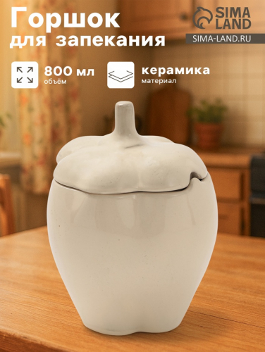 Керамический горшок в форме тыквы — не просто посуда для запекания, а центр притяжения на кухне и праздничном столе. Объём 2,5 л — в самый раз для семейного ужина: запечённые овощи, рагу, курица с картошкой или сытная запеканка. Зелёный цвет и натуральная форма добавляют блюду характер — и хозяйке — удовольствие от подачи.