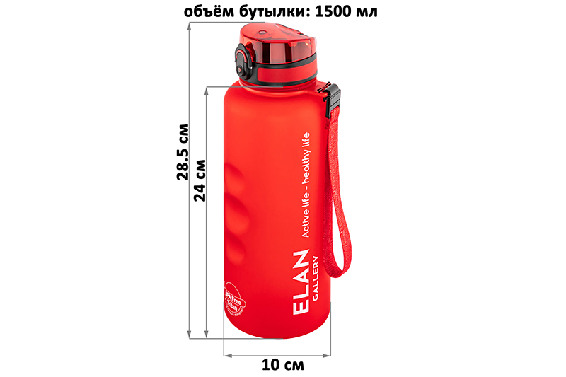 Бутылка для воды «Style Matte» от Elan Gallery – это практичное и стильное решение для ценителей активного образа жизни. Размер ёмкости – 10х10х28,5 см. Высота до крышки – 24 см. Объём – 1,5 литра. Изделие выполнено из тритана – прочного, безопасного материала, не содержащего бисфенол А. Этот пластик не впитывает запахи и не влияет на вкус напитков. Бутылочка подходит как для холодной, так и для горячей жидкости. Освежитесь любимыми летними напитками в жару или согрейтесь ароматным чаем зимой! Матовое покрытие и углубления для пальцев обеспечивают комфортное использование на прогулке, в офисе и на тренировке в зале. Надёжная крышка с герметичным клапаном препятствует проливанию, а встроенное ситечко позволит заваривать напитки с травами и фруктами. С удобным ремешком бутылку можно закрепить на рюкзаке или запястье – это позволяет брать её в путешествия, поездку на велосипеде или автомобиле. Многоразовая дорожная бутылка подходит как для туризма, так и для пикника на природе. Удобная форма делает её не только туристическим, но и спортивным инвентарём. Большая пластиковая ёмкость для питья – прекрасный вариант для занятий фитнесом, йогой или бегом в спортзале или на свежем воздухе. Она также дополнит занятия велоспортом в качестве велосипедного аксессуара. Это надёжный помощник спортсменам во время игры в футбол или волейбол, занятий гимнастикой и танцами. Подходит как для взрослых, так и для школьников – её можно взять в школу и на занятия физкультурой. Благодаря универсальному дизайну и красному цвету она подойдёт как девочкам, так и мальчикам в качестве школьного аксессуара. Функциональная бутылка в дизайнерской картонной упаковке – это готовый подарок для женщин и мужчин. Не подходит для микроволновой печи, посудомоечной машины и стерилизатора. В коллекции бренда Элан Галерея представлена разнообразная посуда и товары для дома на любой вкус. Спортивные аксессуары из серии «Style Matte» помогут следить за водным балансом, где бы вы ни находились!