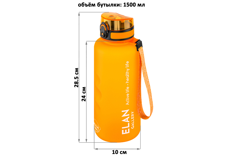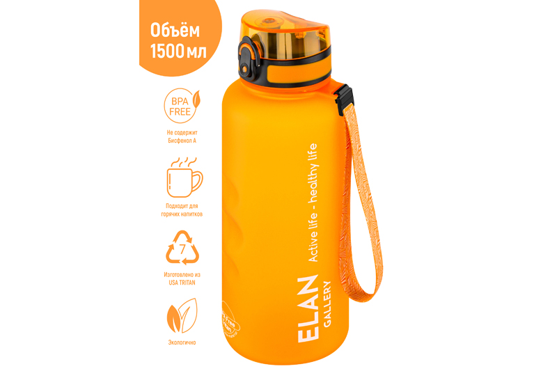 Бутылка для воды «Style Matte» от Elan Gallery – это практичное и стильное решение для ценителей активного образа жизни. Размер ёмкости – 10х10х28,5 см. Высота до крышки – 24 см. Объём – 1,5 литра. Изделие выполнено из тритана – прочного, безопасного материала, не содержащего бисфенол А. Этот пластик не впитывает запахи и не влияет на вкус напитков. Бутылочка подходит как для холодной, так и для горячей жидкости. Освежитесь любимыми летними напитками в жару или согрейтесь ароматным чаем зимой! Матовое покрытие и углубления для пальцев обеспечивают комфортное использование на прогулке, в офисе и на тренировке в зале. Надёжная крышка с герметичным клапаном препятствует проливанию, а встроенное ситечко позволит заваривать напитки с травами и фруктами. С удобным ремешком бутылку можно закрепить на рюкзаке или запястье – это позволяет брать её в путешествия, поездку на велосипеде или автомобиле. Многоразовая дорожная бутылка подходит как для туризма, так и для пикника на природе. Удобная форма делает её не только туристическим, но и спортивным инвентарём. Большая пластиковая ёмкость для питья – прекрасный вариант для занятий фитнесом, йогой или бегом в спортзале или на свежем воздухе. Она также дополнит занятия велоспортом в качестве велосипедного аксессуара. Это надёжный помощник спортсменам во время игры в футбол или волейбол, занятий гимнастикой и танцами. Подходит как для взрослых, так и для школьников – её можно взять в школу и на занятия физкультурой. Благодаря универсальному дизайну и оранжевому цвету она подойдёт как девочкам, так и мальчикам в качестве школьного аксессуара. Функциональная бутылка в дизайнерской картонной упаковке – это готовый подарок для женщин и мужчин. Не подходит для микроволновой печи, посудомоечной машины и стерилизатора. В коллекции бренда Элан Галерея представлена разнообразная посуда и товары для дома на любой вкус. Спортивные аксессуары из серии «Style Matte» помогут следить за водным балансом, где бы вы ни находились!