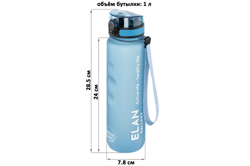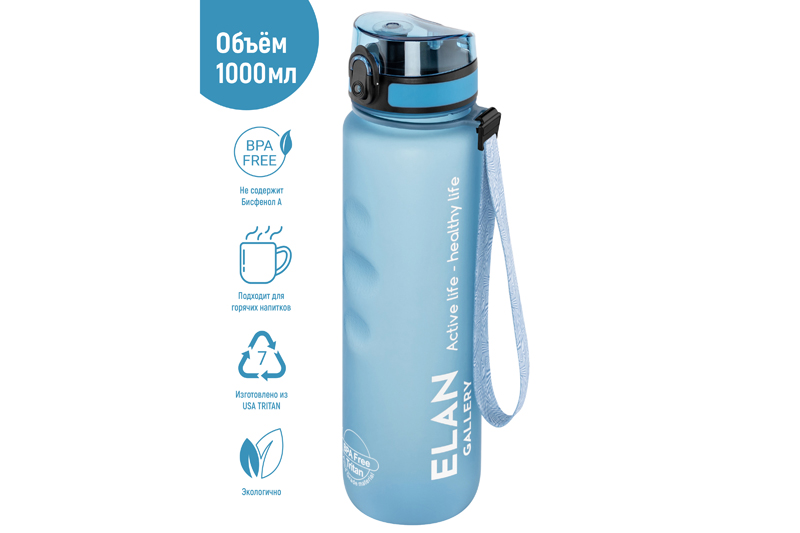 Бутылка для воды «Style Matte» от Elan Gallery – это практичное и стильное решение для ценителей активного образа жизни. Размер ёмкости – 7,8х7,8х28,5 см. Высота до крышки – 24 см. Объём – 1 литр. Изделие выполнено из тритана – прочного, безопасного материала, не содержащего бисфенол А. Этот пластик не впитывает запахи и не влияет на вкус напитков. Бутылочка подходит как для холодной, так и для горячей жидкости. Освежитесь любимыми летними напитками в жару или согрейтесь ароматным чаем зимой! Матовое покрытие и углубления для пальцев обеспечивают комфортное использование на прогулке, в офисе и на тренировке в зале. Надёжная крышка с герметичным клапаном препятствует проливанию, а встроенное ситечко позволит заваривать напитки с травами и фруктами. С удобным ремешком бутылку можно закрепить на рюкзаке или запястье – это позволяет брать её в путешествия, поездку на велосипеде или автомобиле. Многоразовая дорожная бутылка подходит как для туризма, так и для пикника на природе. Удобная форма делает её не только туристическим, но и спортивным инвентарём. Большая пластиковая ёмкость для питья – прекрасный вариант для занятий фитнесом, йогой или бегом в спортзале или на свежем воздухе. Она также дополнит занятия велоспортом в качестве велосипедного аксессуара. Это надёжный помощник спортсменам во время игры в футбол или волейбол, занятий гимнастикой и танцами. Подходит как для взрослых, так и для школьников – её можно взять в школу и на занятия физкультурой. Благодаря универсальному дизайну и цвету голубая пастель она подойдёт как девочкам, так и мальчикам в качестве школьного аксессуара. Функциональная бутылка в дизайнерской картонной упаковке – это готовый подарок для женщин и мужчин. Не подходит для микроволновой печи, посудомоечной машины и стерилизатора. В коллекции бренда Элан Галерея представлена разнообразная посуда и товары для дома на любой вкус. Спортивные аксессуары из серии «Style Matte» помогут следить за водным балансом, где бы вы ни находились!