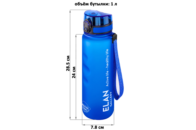 Бутылка для воды «Style Matte» от Elan Gallery – это практичное и стильное решение для ценителей активного образа жизни. Размер ёмкости – 7,8х7,8х28,5 см. Высота до крышки – 24 см. Объём – 1 литр. Изделие выполнено из тритана – прочного, безопасного материала, не содержащего бисфенол А. Этот пластик не впитывает запахи и не влияет на вкус напитков. Бутылочка подходит как для холодной, так и для горячей жидкости. Освежитесь любимыми летними напитками в жару или согрейтесь ароматным чаем зимой! Матовое покрытие и углубления для пальцев обеспечивают комфортное использование на прогулке, в офисе и на тренировке в зале. Надёжная крышка с герметичным клапаном препятствует проливанию, а встроенное ситечко позволит заваривать напитки с травами и фруктами. С удобным ремешком бутылку можно закрепить на рюкзаке или запястье – это позволяет брать её в путешествия, поездку на велосипеде или автомобиле. Многоразовая дорожная бутылка подходит как для туризма, так и для пикника на природе. Удобная форма делает её не только туристическим, но и спортивным инвентарём. Большая пластиковая ёмкость для питья – прекрасный вариант для занятий фитнесом, йогой или бегом в спортзале или на свежем воздухе. Она также дополнит занятия велоспортом в качестве велосипедного аксессуара. Это надёжный помощник спортсменам во время игры в футбол или волейбол, занятий гимнастикой и танцами. Подходит как для взрослых, так и для школьников – её можно взять в школу и на занятия физкультурой. Благодаря универсальному дизайну и небесному цвету она подойдёт как девочкам, так и мальчикам в качестве школьного аксессуара. Функциональная бутылка в дизайнерской картонной упаковке – это готовый подарок для женщин и мужчин. Не подходит для микроволновой печи, посудомоечной машины и стерилизатора. В коллекции бренда Элан Галерея представлена разнообразная посуда и товары для дома на любой вкус. Спортивные аксессуары из серии «Style Matte» помогут следить за водным балансом, где бы вы ни находились!