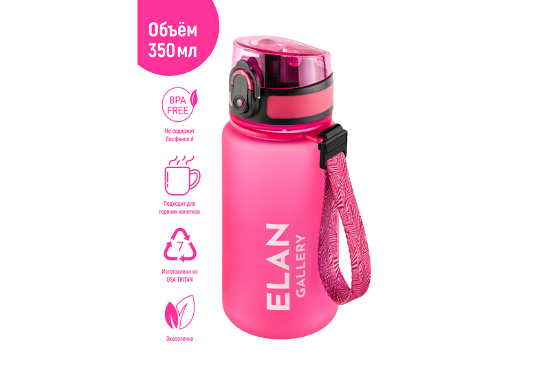 Бутылка для воды «Style Matte» от Elan Gallery – это практичное и стильное решение для ценителей активного образа жизни. Размер ёмкости – 6,8х6,8х17 см. Высота до крышки – 12,5 см. Объём – 350 мл. Изделие выполнено из тритана – прочного, безопасного материала, не содержащего бисфенол А. Этот пластик не впитывает запахи и не влияет на вкус напитков. Бутылочка подходит как для холодной, так и для горячей жидкости. Освежитесь любимыми летними напитками в жару или согрейтесь ароматным чаем зимой! Матовое покрытие обеспечивает комфортное использование на прогулке, в офисе и на тренировке в зале. Надёжная крышка с герметичным клапаном препятствует проливанию, а встроенное ситечко позволит заваривать напитки с травами и фруктами. С удобным ремешком бутылку можно закрепить на рюкзаке или запястье – это позволяет брать её в путешествия, поездку на велосипеде или автомобиле. Многоразовая дорожная бутылка подходит как для туризма, так и для пикника на природе. Удобная форма делает её не только туристическим, но и спортивным инвентарём. Пластиковая ёмкость для питья – прекрасный вариант для занятий фитнесом, йогой или бегом в спортзале или на свежем воздухе. Она также дополнит занятия велоспортом в качестве велосипедного аксессуара. Это надёжный помощник спортсменам во время игры в футбол или волейбол, занятий гимнастикой и танцами. Подходит как для взрослых, так и для школьников – её можно взять в школу и на занятия физкультурой. Благодаря универсальному дизайну и цвету фуксия она подойдёт как девочкам, так и мальчикам в качестве школьного аксессуара. Функциональная бутылка в дизайнерской картонной упаковке – это готовый подарок для женщин и мужчин. Не подходит для микроволновой печи, посудомоечной машины и стерилизатора. В коллекции бренда Элан Галерея представлена разнообразная посуда и товары для дома на любой вкус. Спортивные аксессуары из серии «Style Matte» помогут следить за водным балансом, где бы вы ни находились!