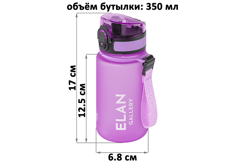 Бутылка для воды «Style Matte» от Elan Gallery – это практичное и стильное решение для ценителей активного образа жизни. Размер ёмкости – 6,8х6,8х17 см. Высота до крышки – 12,5 см. Объём – 350 мл. Изделие выполнено из тритана – прочного, безопасного материала, не содержащего бисфенол А. Этот пластик не впитывает запахи и не влияет на вкус напитков. Бутылочка подходит как для холодной, так и для горячей жидкости. Освежитесь любимыми летними напитками в жару или согрейтесь ароматным чаем зимой! Матовое покрытие обеспечивает комфортное использование на прогулке, в офисе и на тренировке в зале. Надёжная крышка с герметичным клапаном препятствует проливанию, а встроенное ситечко позволит заваривать напитки с травами и фруктами. С удобным ремешком бутылку можно закрепить на рюкзаке или запястье – это позволяет брать её в путешествия, поездку на велосипеде или автомобиле. Многоразовая дорожная бутылка подходит как для туризма, так и для пикника на природе. Удобная форма делает её не только туристическим, но и спортивным инвентарём. Пластиковая ёмкость для питья – прекрасный вариант для занятий фитнесом, йогой или бегом в спортзале или на свежем воздухе. Она также дополнит занятия велоспортом в качестве велосипедного аксессуара. Это надёжный помощник спортсменам во время игры в футбол или волейбол, занятий гимнастикой и танцами. Подходит как для взрослых, так и для школьников – её можно взять в школу и на занятия физкультурой. Благодаря универсальному дизайну и сиреневому цвету она подойдёт как девочкам, так и мальчикам в качестве школьного аксессуара. Функциональная бутылка в дизайнерской картонной упаковке – это готовый подарок для женщин и мужчин. Не подходит для микроволновой печи, посудомоечной машины и стерилизатора. В коллекции бренда Элан Галерея представлена разнообразная посуда и товары для дома на любой вкус. Спортивные аксессуары из серии «Style Matte» помогут следить за водным балансом, где бы вы ни находились!