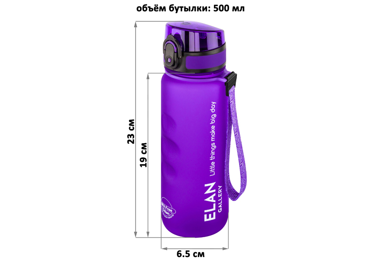 Бутылка для воды «Style Matte» от Elan Gallery – это практичное и стильное решение для ценителей активного образа жизни. Размер ёмкости – 6,5х6,5х23 см. Высота до крышки – 19 см. Объём – 500 мл. Изделие выполнено из тритана – прочного, безопасного материала, не содержащего бисфенол А. Этот пластик не впитывает запахи и не влияет на вкус напитков. Бутылочка подходит как для холодной, так и для горячей жидкости. Освежитесь любимыми летними напитками в жару или согрейтесь ароматным чаем зимой! Матовое покрытие и углубления для пальцев обеспечивают комфортное использование на прогулке, в офисе и на тренировке в зале. Надёжная крышка с герметичным клапаном препятствует проливанию, а встроенное ситечко позволит заваривать напитки с травами и фруктами. С удобным ремешком бутылку можно закрепить на рюкзаке или запястье – это позволяет брать её в путешествия, поездку на велосипеде или автомобиле. Многоразовая дорожная бутылка подходит как для туризма, так и для пикника на природе. Удобная форма делает её не только туристическим, но и спортивным инвентарём. Пластиковая ёмкость для питья – прекрасный вариант для занятий фитнесом, йогой или бегом в спортзале или на свежем воздухе. Она также дополнит занятия велоспортом в качестве велосипедного аксессуара. Это надёжный помощник спортсменам во время игры в футбол или волейбол, занятий гимнастикой и танцами. Подходит как для взрослых, так и для школьников – её можно взять в школу и на занятия физкультурой. Благодаря универсальному дизайну и цвету лаванда она подойдёт как девочкам, так и мальчикам в качестве школьного аксессуара. Функциональная бутылка в дизайнерской картонной упаковке – это готовый подарок для женщин и мужчин. Не подходит для микроволновой печи, посудомоечной машины и стерилизатора. В коллекции бренда Элан Галерея представлена разнообразная посуда и товары для дома на любой вкус. Спортивные аксессуары из серии «Style Matte» помогут следить за водным балансом, где бы вы ни находились!