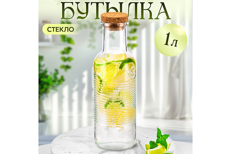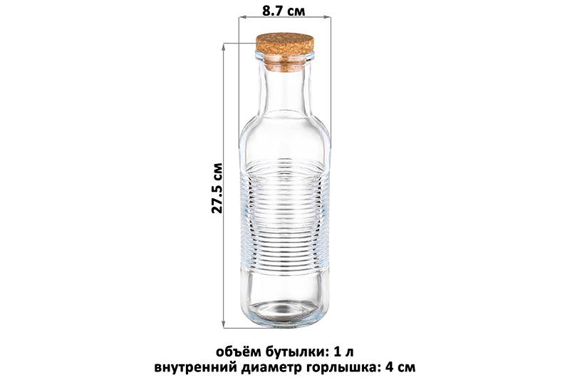 Бутылка стеклянная 1 л 8,7*8,7*27,5 см "Glaskraft" с пробковой крышкой