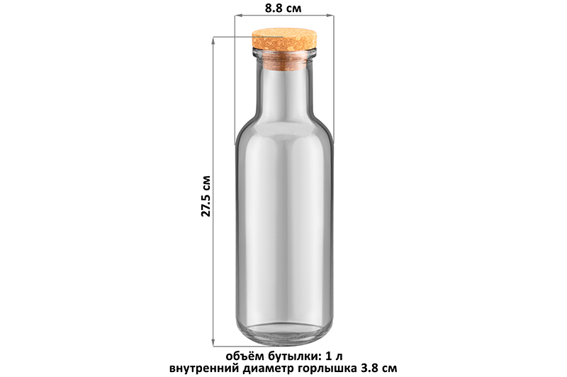 Бутылка стеклянная 1 л 8,7*8,7*27,5 см "Glaskraft" с пробковой крышкой, серая