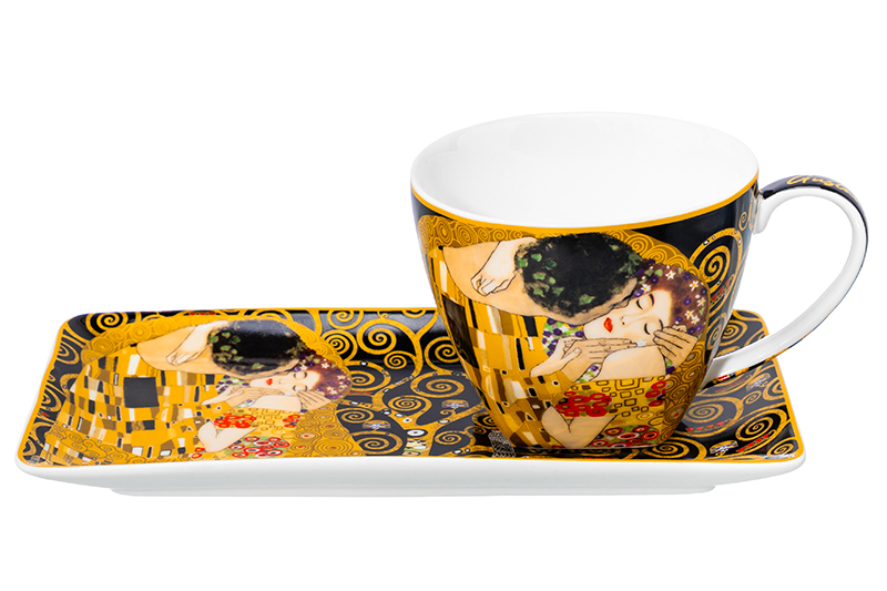 Чашка с блюдцем для десерта Elan Gallery "Поцелуй на чёрном" выполнены из фарфора нового поколения new bone china, украшены изображением в стиле модерн. New bone china сочетает в себе изящность и высокую прочность. От других видов костяного фарфора материал отличается большей экологичностью в производстве. Объём чашки – 250 мл, размер блюдца – 20х10х2 см. Чашка и блюдце украшены роскошными репродукциями картины художника Густава Климта. В коллекции бренда Elan Gallery можно найти много красивой посуды и предметов декора с изображениями по мотивам шедевров мировой живописи! Блюдечко имеет необычную прямоугольную форму. Кружка с блюдцем подходят ценителям чая и кофе, которые любят пить из красивой и необычной посуды. Интересная чашка с удобной ручкой украсит ваш стол своим стильным дизайном как на праздник, так и в будни. Это идеальный вариант для того, чтобы согреться горячим чаем зимой и освежиться прохладным лимонадом летом. Используйте блюдце как подставку для чашки, чтобы порадовать гостей изящной сервировкой. Положите на блюдце кусочек торта, домашнего пирога или пирожное. Небольшая тарелочка подойдёт не только для десерта, но и закусок: сырной нарезки, сырокопчёной колбасы или свежих овощей и зелени. Не рекомендуется применять абразивные моющие средства. Набор можно использовать в микроволновой печи и посудомоечной машине. Поставляется в красивой картонной коробке. Станет приятным подарком вашим близким на любой праздник. Благодаря стильной коробочке не понадобится подарочная упаковка. Чашка с десертным блюдцем станут украшением вашей кухни или приятным сюрпризом для ценителей искусства!