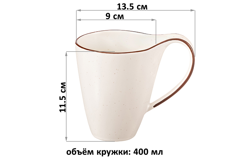 Набор 2 кружек из серии «Терра» от Elan Gallery предназначен для эстетичной сервировки вашего стола. Размер каждой ёмкости – 13,5х9х11,5 см, объём – 400 мл. Серия фарфоровой посуды «Терра» – это погружение в атмосферу прибрежной лёгкости, тёплых песочных пляжей и природной гармонии. Белую поверхность украшает россыпь чёрных крапинок, а коричневый кант придаёт изделиям глубину. Кофейные кружки помогут вам провести множество приятных завтраков с капучино и латте, а также уютные чайные вечера с конфетами, вафлями, другими десертами и сладостями. Подойдут ценителям чая и кофе, которые любят пить из красивой и необычной посуды. Согрейтесь зимой любимым горячим напитком: какао с маршмэллоу, ягодным чаем или горячим шоколадом. Летом освежитесь домашним лимонадом или морсом. Декоративные изделия помогут организовать запоминающиеся чаепития. Не рекомендуется применять абразивные моющие средства. Подходят для использования в посудомоечной машине и микроволновой печи. Поставляются в дизайнерской картонной коробке – благодаря ей вам не потребуется дополнительная подарочная упаковка. Фарфоровая сервировочная посуда будет оригинальным подарком для хозяйки, ценящей не только практичность, но и привлекательность. Коллекция «Терра» от бренда Элан Галерея наполнит ваш дом свежестью и естественным уютом, создавая пространство для незабываемых мгновений.