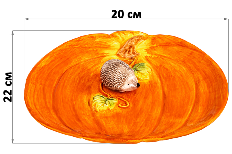 Блюдо из серии «Ёжики» от Elan Gallery предназначено для эстетичной сервировки вашего стола. Размер изделия – 22х20,5х3,5 см, размер дна – 16,5х15,5 см. Выполнено из керамики в виде большой тыквы, посередине которой сидит маленький ёжик. Тыква как символ изобилия вплетена в сюжет коллекции. Она ассоциируется с уютными осенними вечерами и волшебной атмосферой Хэллоуина. Блюдо подойдёт для подачи мясных и рыбных блюд, а также разнообразных закусок. Используйте его для сервировки салатов, сырной нарезки, овощей и фруктов. Оно поможет угостить большое количество гостей. Удобно разместите на фигурной сервировочной тарелке кусочки торта или пирога, конфеты, зефир, а также сладости и десерты. Задействуйте для подачи суши, роллов или бутербродов на завтрак. Благодаря необычному дизайну она разнообразит интерьер кухни, столовой или гостиной, добавив вашему дому уюта. Не рекомендуется применять абразивные моющие средства. Не подходит для использования в посудомоечной машине и микроволновой печи. Поставляется в дизайнерской картонной коробке – благодаря ей вам не потребуется дополнительная подарочная упаковка. Коллекция «Ёжики» от бренда Элан Галерея – это посуда, где каждая деталь создана с теплом и раскрашена оттенками осени!