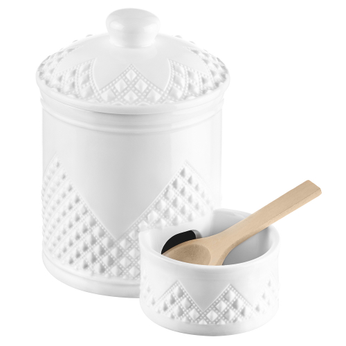 БЫЛО 1077 руб! Банка д/соли 15,5*10*14,5 см 500 мл "Ромбики" + деревянная ложка + крышка