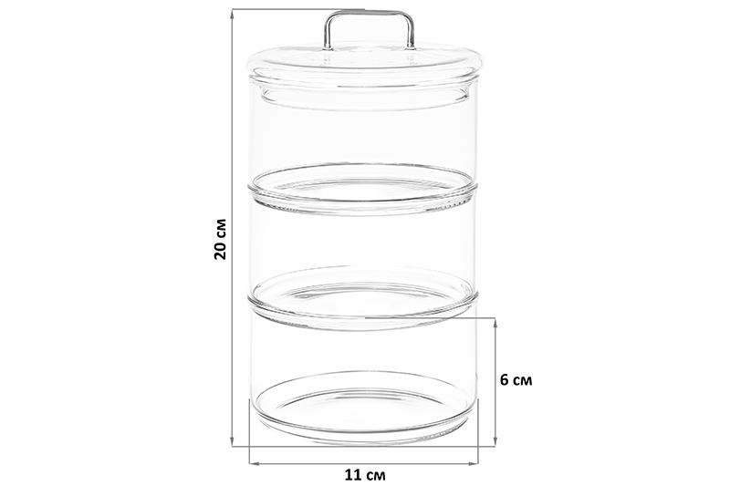 Трехсекционная банка от бренда Elan Gallery "Crystal glass" позволит компактно хранить любые продукты в вашем доме: сахар и соль, крупы, а также чай и кофе. Изготовленная из прозрачного боросиликатного стекла, она отличается прочностью, термостойкостью и эстетичным внешним видом. Размер целой трехуровневой конструкции — 11,5×11,5×20 см. Высота без крышки — 16,7 см. Каждая отдельная секция имеет объём 400 мл и размер 11×11×6 см. Трехъярусный контейнер с прозрачными стенками удобно использовать для хранения сыпучих продуктов и сладостей. Органайзер с крышкой надёжно защищает содержимое от внешних воздействий, сохраняя аромат и свежесть. Банка с секциями идеально подойдет для хранения специй и приправ, орехов и сухофруктов. Круглая этажерка отлично смотрится на полке или сервированном столе. Стенки из прозрачного стекла позволяют быстро находить нужные продукты без лишних усилий. Трёхъярусная конфетница с крышкой станет украшением интерьера кухни или столовой. Она подходит для подачи конфет, печенья или ягод. Баночку можно использовать как декоративный элемент для хранения мелочей. Компактно сложите в отсеки ватные палочки, диски и другие предметы гигиены в ванной комнате. Не рекомендуется применять абразивные моющие средства. Можно использовать в микроволновой печи и посудомоечной машине. Поставляется в стильной картонной коробке. Благодаря красочной коробочке не понадобится подарочная упаковка, если вы решите сделать сюрприз своим близким. Стеклянная емкость с крышкой — отличный выбор для тех, кто ценит аккуратность и порядок на кухне. Менажница станет универсальным элементом кухонного инвентаря и отличным подарком на любой праздник. В коллекции бренда Элан Галерея представлено много стильной посуды и функциональных товаров для дома. Выберите варианты на свой вкус!