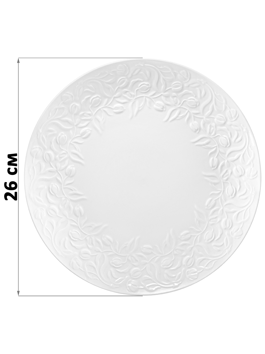 Набор 2 тарелок Elan Gallery "Тюльпаны" выполнен из белого фарфора в классическом дизайне. Размер каждой тарелочки – 26х26х2,5 см. Посуда украшена рельефными узорами с цветами. Большие тарелки для подачи на стол ваших любимых блюд станут незаменимой вещью в доме. Набор отлично подойдёт для любых закусок, например, фруктов или нарезки. Каждая тарелка станет незаменимым помощником при сервировке завтрака, ужина или вторых блюд на обед. Эргономичная форма позволит разместить на них любую еду, от блинов до пасты. Фарфоровая посуда отличается от керамики повышенной плотностью. Фарфор не впитывает цвет продуктов и не деформируется от влаги, чему может быть подвержена керамическая посуда. Универсальный набор идеально впишется в любой интерьер вашей кухни и подойдёт при сервировке стола не только в будни, но и на праздник. Не рекомендуется применять абразивные моющие средства. Можно использовать в микроволновой печи и мыть в посудомоечной машине. Поставляется в картонной коробке с логотипом бренда – благодаря ей вам не потребуется дополнительная подарочная упаковка! Станет приятным подарком на любой праздник. Серия "Тюльпаны" станет украшением любого кухонного инвентаря и позволит собрать сервиз в едином стиле!