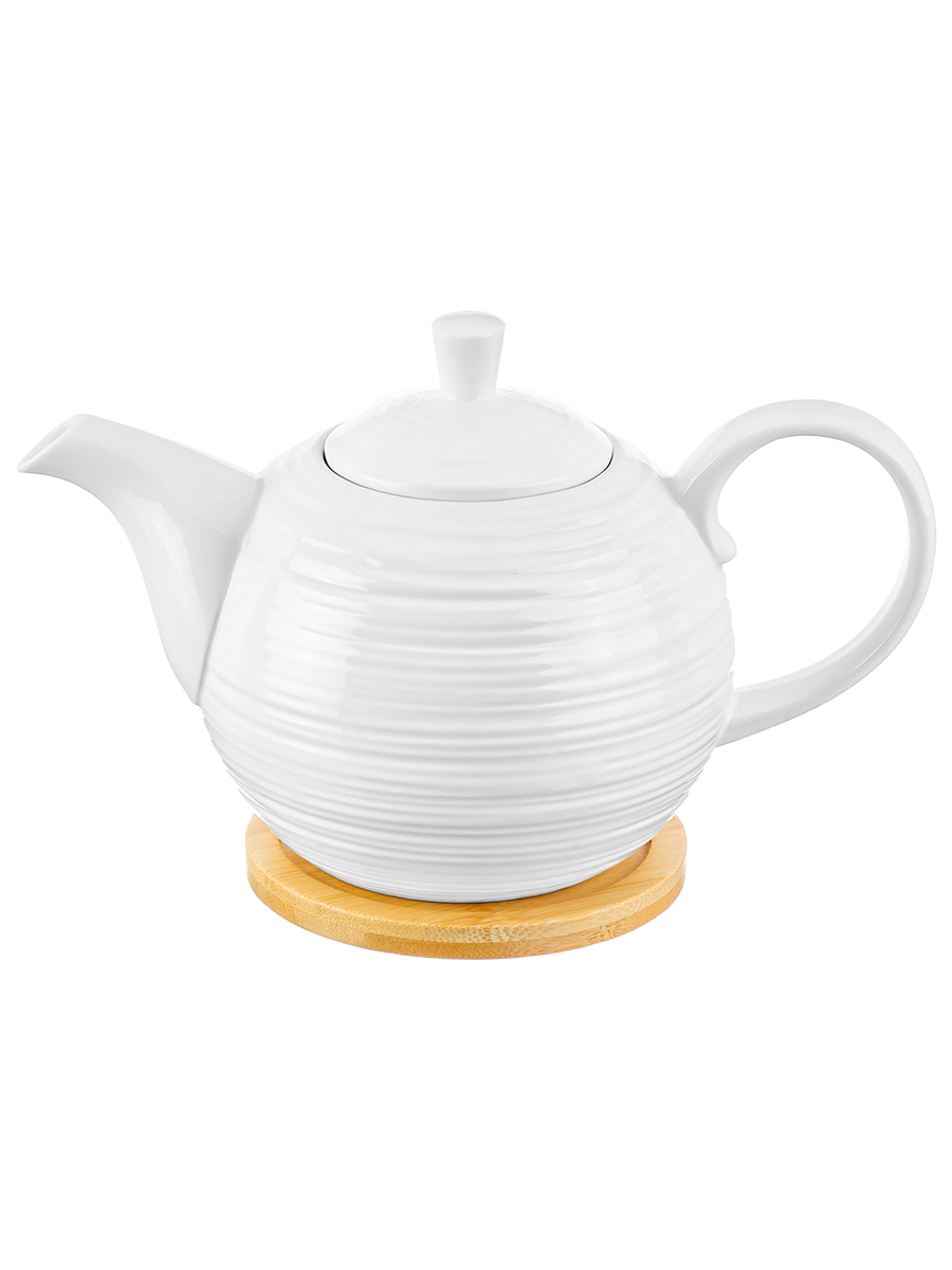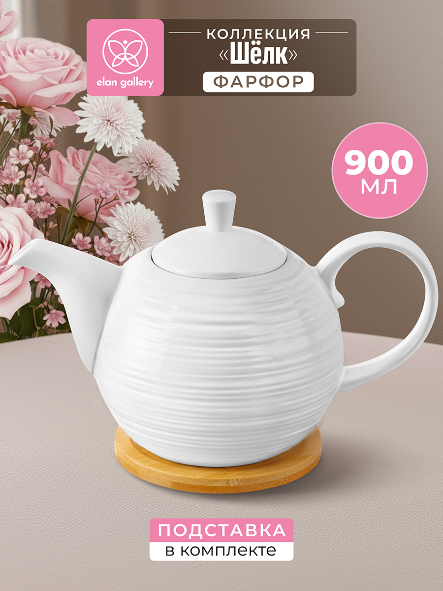 Чайник из серии «Шёлк» от Elan Gallery предназначен для эстетичной сервировки вашего стола. Полный размер комплекта – 22,5х13х14 см. Размер чайника – 22,5х13х13 см, объём – 900 мл. Выполнен из высококачественного белого фарфора. Он не впитывает цвет продуктов и легко отмывается, благодаря чему надолго сохранит свою белизну. Поверхность украшена частым горизонтальным рельефом. Подставка выполнена из натурального бамбука, её размер – 11х11х1 см. Поможет отпраздновать Широкую Масленицу со вкусом! Масленица – это чудесный повод собраться за праздничным столом и насладиться тёплой атмосферой и традиционной русской кухней. Декоративный чайничек подходит для ежедневного заваривания и станет незаменимой составляющей любого чаепития. Фильтр в виде маленьких отверстий в стенке позволит наслаждаться ароматной заваркой без попадания мелких чаинок. Крышка прочно держится на заварнике благодаря язычку. Деревянная подставка защитит поверхности от воздействия высоких температур. Вместительный заварочник позволит наполнить множество кружек за раз, практично дополняя большое застолье! Подайте его к столу, чтобы насладиться чаем с конфетами, шоколадом и другими сладостями. Он привнесёт эстетику в организацию чайной церемонии и впишется в интерьер любой кухни, столовой или гостиной. Не рекомендуется применять абразивные моющие средства. Без бамбуковой подставки чайник подходит для использования в посудомоечной машине и микроволновой печи. Бамбук нельзя замачивать! Поставляется в дизайнерской картонной коробке – благодаря ей вам не потребуется дополнительная подарочная упаковка. Фарфоровая сервировочная посуда станет оригинальным подарком для хозяйки, ценящей не только практичность, но и привлекательность. В ассортименте бренда Elan Gallery вы найдёте предметы декора и красивую посуду для приготовления и сервировки масленичных блюд. Пусть Масленичная неделя принесет вам радость и множество вкусных моментов!