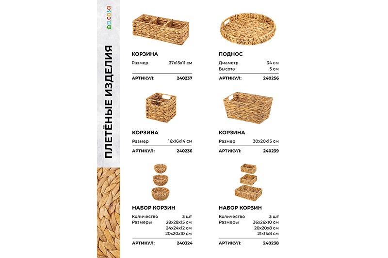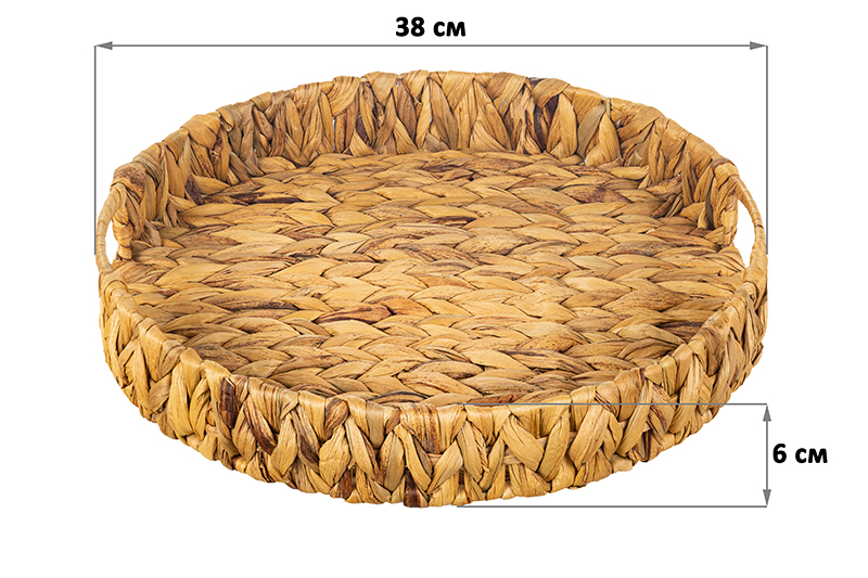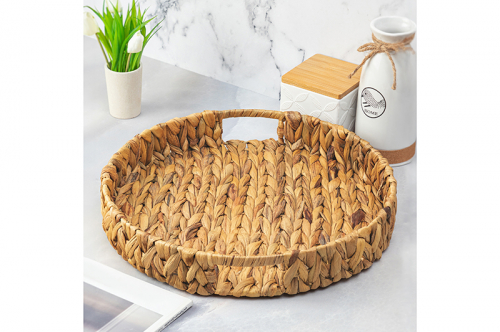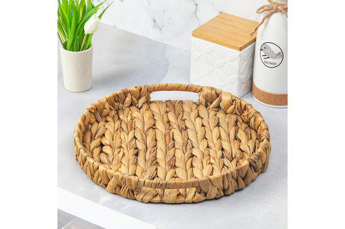 Плетеный поднос бренда El Casa изготовлен из высушенных стеблей и листьев водного гиацинта. Полный размер подноса – 38х38х6 см. Натуральный цвет подноса подчеркивает его органичность и гармонию с окружающей средой. Он добавит натуральность и теплоту вашему интерьеру. Данное изделие можно использовать для эстетичной подачи закусок, горячих блюд, напитков. Это отличный вариант для сервировки чая, вина, завтрака в постель, организации чаепитий и чайных церемоний на веранде. Плетеная корзинка идеальна для хранения одежды, канцелярии, косметики, предметов личной гигиены. Подходит для размещения на кухне, в прихожей, гостиной. Органайзер из водного гиацинта имеет прочное дно, высокие бортики и удобные отверстия под ручки, которые облегчают его переноску. Поднос не боится температурных перепадов, влажности, не выгорает на солнце. При уходе не рекомендуется применять абразивные моющие средства. Интерьерный плетеный поднос станет практичным подарком для родных и близких.