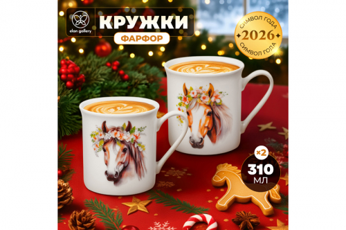 Набор 2 кружек от бренда Elan Gallery "Лошадки" выполнен из фарфора. Размер каждого изделия 13,5х10,5х10,7 см, объём – 530 мл. Дизайн вдохновлён грацией и красотой самого благородного животного на планете – лошади. Кружечки украшены чёрно-белыми изображениями грациозных лошадей с цветами в пышных гривах. Они помогут провести множество приятных завтраков с капучино или латте, а также уютных чайных вечеров с любимым горячим напитком. Белые бокалы с изящными рисунками чёрного цвета имеют оригинальную форму бочонка. Они подходят ценителям чая и кофе, которые любят пить из красивой посуды. Фарфоровое изделие с принтом отлично подойдёт как для молока, так свежевыжатого сока и морса. Гладкие фарфоровые стеночки в отличие от керамических быстро отмываются и не впитывают цвет напитков. Кружки со стильным дизайном украсят интерьер кухни или столовой. Подойдут как женщине, так и мужчине для кофейных перерывов на работе в офисе. Можно использовать как парные. Не рекомендуется применять абразивные моющие средства. Подходят для микроволновой печи и посудомоечной машины. Набор поставляется в стильной картонной коробке. Благодаря красочной коробочке вам не понадобится дополнительная подарочная упаковка. Станет приятным подарком на праздник. Подарите фарфоровую кружку близким или коллеге, чтобы выразить свои тёплые чувства. Особенно понравится любителям лошадок, а также ценителям эстетичных и оригинальных вещей. В коллекции бренда Элан Галерея представлено много кухонного инвентаря, сувениров и товаров для дома, в том числе бокалов и красивых чашек. Сделайте перерыв на мечты и насладитесь любимыми напитками из кружек со стильным дизайном!