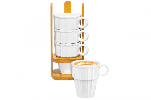 БЫЛО 1217 руб! Набор кружек 4 пр. 170 мл 10,5*8,5*21 см "Ампир" на бамбуковой подставке