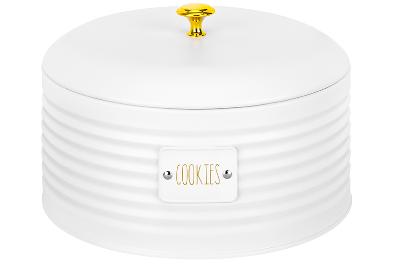 Банка для печенья белого цвета от Elan Gallery – это стильное решение для хранения любимых лакомств! Размер 21,5х21,5х14,5 см, объём 3 литра. Высота без крышки 10,5 см. Выполнена из металла с пудровым покрытием, что обеспечивает долговечность её использования. Имеет красивую фигурную ручку из пластика золотого цвета и украшена надписью "Cookies" ("Печенье"). Крышка на металлическом контейнере оснащена силиконовым уплотнителем. Металлическая крышечка плотно сидит, защищая сладости от пыли и влаги. Красивая сервировочная ёмкость станет не только функциональным, но и эстетичным дополнением вашего кухонного инвентаря. Благодаря стильному дизайну баночка станет предметом декора кухни или столовой, украсит интерьер. Храните в ней печенье, вафли и пряники. Благодаря эргономичной форме органайзер подойдёт для хранения пакетов с выпечкой и большого количества конфет. В большую баночку уместится много конфеток и шоколадок, в отличие от декоративной конфетницы или вазочки. Можно использовать не только для эстетичного хранения, но и сервировки. Красивая подача угощений к чаю позволит создать особую атмосферу. Альтернативный вариант использования железной коробочки – для хранения украшений или швейных принадлежностей. Не рекомендуется применять абразивные моющие средства. Нельзя использовать в посудомоечной машине. Банка для печенья от Elan Gallery позволит эстетично хранить любимые лакомства и удивит ваших гостей. Станет полезным подарком на любой праздник мужчинам и женщинам. Поставляется в стильной картонной коробке. Благодаря красочной коробочке не понадобится подарочная упаковка. В коллекции бренда Elan Gallery представлены стильные товары для дома. Здесь вы найдёте банки для хранения круп и других сыпучих продуктов, а также хлебницы со стильным дизайном. Соберите набор посуды для вашей кухни в едином стиле!