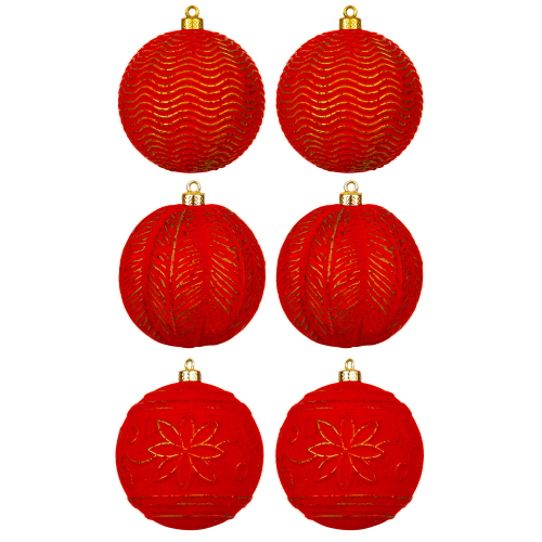 БЫЛО 1262 руб! Набор 6 новогодних шаров 9,5*9,5 см "Красный бархат"