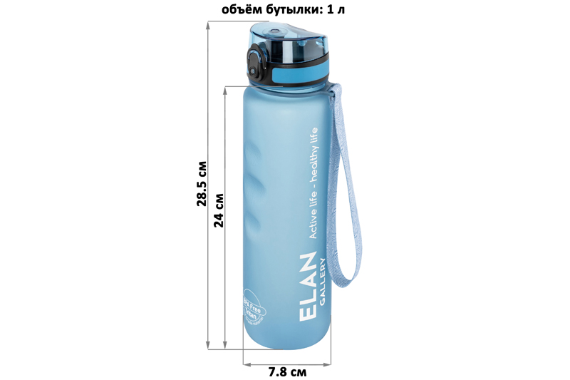 Бутылка для воды и другой жидкости Elan Gallery "Style Matte" нежного голубого цвета имеет углубления для пальцев и мерную шкалу. Следите за водным балансом и ведите здоровый и активный образ жизни! Объём ёмкости – 1 литр. Питьевая бутылочка выполнена из качественного пластика Usa Tritan. Не содержит бисфенол А и полностью безопасна для здоровья. Подходит для холодных и горячих напитков: воды, сока или чая. Бутыль для питья оснащена ситечком, поильником и клапаном (замком) на крышке. Дорожная бутылка имеет защиту от случайного открывания в сумке или рюкзаке. Имеет ремешок для переноски, что удобно для прогулки или бега. Стильный инвентарь станет незаменимой вещью на отдыхе, в путешествиях или спортзале. Бутылку на ремне с матовым покрытием удобно использовать во время поездок на велосипеде, в автомобиле или во время игры в футбол. Фляга для воды Style matte многоразовая, прочная и легкая, её удобно брать в дорогу или тренажёрный зал. Можно использовать как спорт бутылку для фитнеса и велоспорта, туризма, а также как детскую для школьника на занятиях физкультурой. Не впитывает запахи, не влияет на вкус напитков и легко отмывается. Красивая пластиковая бутылка поможет утолить жажду охлаждённым лимонадом на прогулке, тренировке или в школе. Не подходит для СВЧ, ПММ, стерилизатора. Станет приятным подарком мужчинам и женщинам. Такой сюрприз особенно придётся по вкусу спортсменам: футболисту или любительнице гимнастики и танцев. Станет прекрасным дополнением вашей коллекции походного и туристического инвентаря. В коллекции Elan Gallery представлено много посуды и товаров для дома на любой вкус. Спортивные аксессуары серии Style matte помогут следить за водным балансом и пить любимые напитки, где бы вы ни находились!