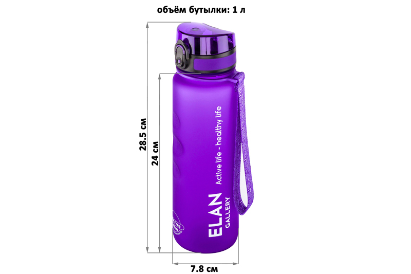 Бутылка для воды и другой жидкости Elan Gallery "Style Matte" лавандового цвета имеет углубления для пальцев и мерную шкалу. Следите за водным балансом и ведите здоровый и активный образ жизни! Объём ёмкости – 1 литр. Питьевая бутылочка выполнена из качественного пластика Usa Tritan. Не содержит бисфенол А и полностью безопасна для здоровья. Подходит для холодных и горячих напитков: воды, сока или чая. Бутыль для питья оснащена ситечком, поильником и клапаном (замком) на крышке. Дорожная бутылка имеет защиту от случайного открывания в сумке или рюкзаке. Имеет ремешок для переноски, что удобно для прогулки или бега. Стильный инвентарь станет незаменимой вещью на отдыхе, в путешествиях или спортзале. Бутылку на ремне с матовым покрытием удобно использовать во время поездок на велосипеде, в автомобиле или во время игры в футбол. Фляга для воды Style matte многоразовая, прочная и легкая, её удобно брать в дорогу или тренажёрный зал. Можно использовать как спорт бутылку для фитнеса и велоспорта, туризма, а также как детскую для школьника на занятиях физкультурой. Не впитывает запахи, не влияет на вкус напитков и легко отмывается. Красивая пластиковая бутылка поможет утолить жажду охлаждённым лимонадом на прогулке, тренировке или в школе. Не подходит для СВЧ, ПММ, стерилизатора. Станет приятным подарком мужчинам и женщинам. Такой сюрприз особенно придётся по вкусу спортсменам: футболисту или любительнице гимнастики и танцев. Станет прекрасным дополнением вашей коллекции походного и туристического инвентаря. В коллекции Elan Gallery представлено много посуды и товаров для дома на любой вкус. Спортивные аксессуары серии Style matte помогут следить за водным балансом и пить любимые напитки, где бы вы ни находились!