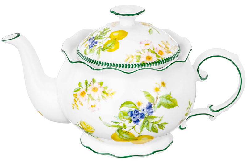 Чайник из серии «Лимоны» предназначен для эстетичной сервировки вашего стола. Размер изделия – 22х12,5х13 см, объём – 700 мл. Выполнен из фарфора нового поколения new bone china, сочетающего в себе изящность и высокую прочность. За счёт гладкости изделия легко отмываются, поэтому долго сохраняют привлекательный вид и практичны в использовании. Плотная структура материала позволяет посуде дольше сохранять температуру блюд и напитков. От других видов костяного фарфора new bone china отличается большей экологичностью в производстве. Фарфоровая посуда с ярким рисунком в виде лимонов станет изящным дополнением интерьера любой кухни или столовой. Декоративный чайничек подходит для ежедневного заваривания и станет незаменимым элементом организации любого чаепития. Насладитесь любимым напитком и удивите гостей красивой сервировкой! Фильтр в виде маленьких отверстий в стеночке позволит наслаждаться ароматной заваркой без попадания мелких чаинок. С обратной стороны крышечки имеется язычок, благодаря которому она хорошо держится на заварнике. Вместительный заварочник позволит наполнить множество кружек за раз и станет незаменимым дополнением большого застолья! Подайте его к столу, чтобы насладиться чаем с конфетами, шоколадом и другими сладостями. Станет эстетичной принадлежностью для любой чайной церемонии. Не рекомендуется применять абразивные моющие средства. Подходит для использования в посудомоечной машине. Поставляется в стильной картонной коробке – благодаря ей вам не потребуется дополнительная подарочная упаковка. Фарфоровая посуда станет стильным подарком для хозяйки, ценящей не только практичность, но и привлекательность. Серия «Лимоны» станет украшением любого кухонного инвентаря и позволит собрать сервиз в едином стиле!