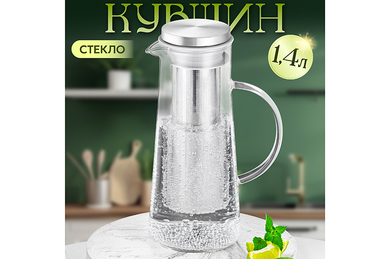 Кувшин из серии «Crystal glass» от Elan Gallery предназначен для эстетичной сервировки вашего стола. Размер изделия – 16,5х11х25,5 см, объём – 1,4 литра. Выполнен из жаропрочного боросиликатного стекла, не содержащего вредных веществ, не впитывающего запахи и вкусы. Оно выдерживает температуру от -20 до +150 градусов и подходит как для горячих, так и для прохладительных напитков. Крышка выполнена из нержавеющей стали и оснащена силиконовым уплотнителем, благодаря чему надёжно защищает содержимое от проливания, а также от пыли и грязи. Инфузер из нержавеющей стали облегчит заваривание – поместите в него чайные листья, кусочки фруктов или лёд. Ваш напиток получится чистым, без чаинок и соринок. Ёмкость можно приспособить как для чистой питьевой воды, так и под алкогольные напитки на празднике. Термостойкий кувшин позволит вам наслаждаться любимыми напитками в любое время года. Жарким летом угоститесь холодным лимонадом или ягодным компотом. Используйте прозрачный кувшин как лимонадницу или для эстетичной подачи вина и коктейлей. Зимой или дождливой осенью угоститесь горячим ароматным глинтвейном. Не рекомендуется применять абразивные моющие средства. Не использовать для разогрева жидкостей на плите, на открытом огне или в духовом шкафу. Без крышки и инфузера подходит для использования в посудомоечной машине. Поставляется в дизайнерской картонной коробке – благодаря ей вам не потребуется дополнительная подарочная упаковка. Такой сосуд станет отличным подарком для хозяйки, ценящей не только практичность, но и привлекательность. В коллекции бренда Элан Галерея множество красивой посуды, которая поможет создать уют на вашей кухне!