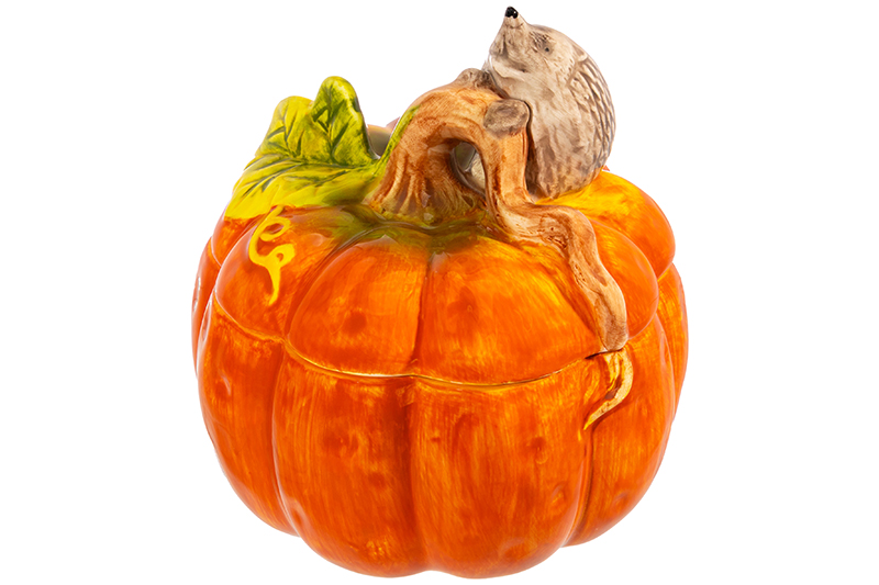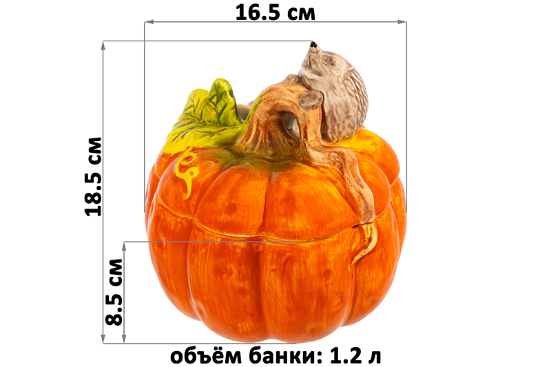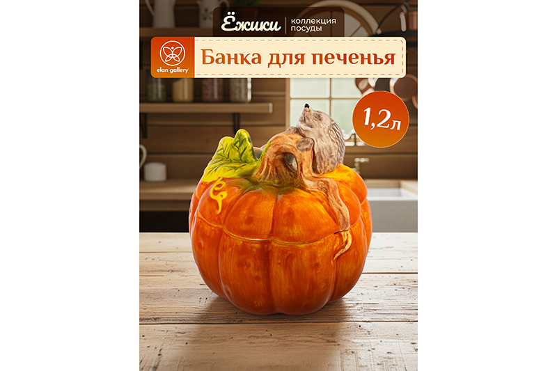 Банка для печенья из серии «Ёжики» от Elan Gallery поможет организовать хранение продуктов на вашей кухне. Размер изделия – 16,5х16,5х18,5 см, объём – 1,2 литра, размер дна – 11х11 см. Выполнена из керамики в виде большой реалистичной тыквы, на верхушке которой сидит маленький ёжик. Тыква как символ изобилия вплетена в сюжет коллекции. Она ассоциируется с уютными осенними вечерами и волшебной атмосферой Хэллоуина. Красивый контейнер подойдёт для ваших любимых угощений и сладостей: конфет, печенья, леденцов и зефира. Сложите в него орехи, ягоды и сухофрукты. Используйте для хранения различных сыпучих продуктов: чая и кофе, сахара и соли, приправ и специй. Он станет незаменимым элементом вашего кухонного инвентаря и пригодится при подаче самых разнообразных блюд. Прекрасно дополнит сервировку праздничного стола. Используйте большого ёжика в качестве декоративной фигурки, разместите на полке или тумбочке. Не рекомендуется применять абразивные моющие средства. Не подходит для использования в посудомоечной машине и микроволновой печи. Поставляется в яркой картонной коробке – благодаря ей вам не потребуется дополнительная подарочная упаковка. Коллекция «Ёжики» от бренда Элан Галерея – это посуда, где каждая деталь создана с теплом и раскрашена оттенками осени!