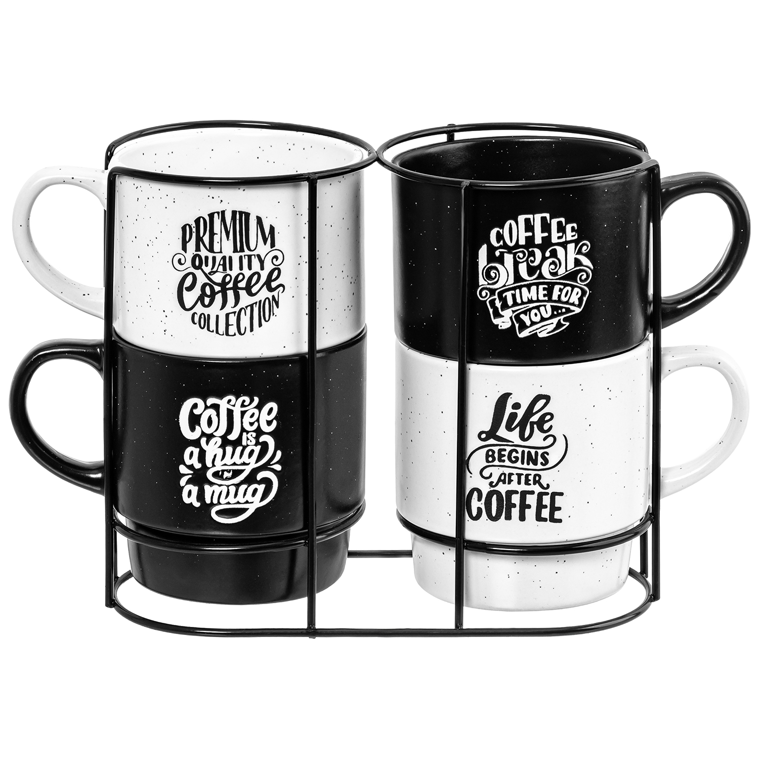 БЫЛО 1447 руб!! Набор 4 кружек 430 мл 13,5*9,5*9,5 см "Кофе" на металлической подставке