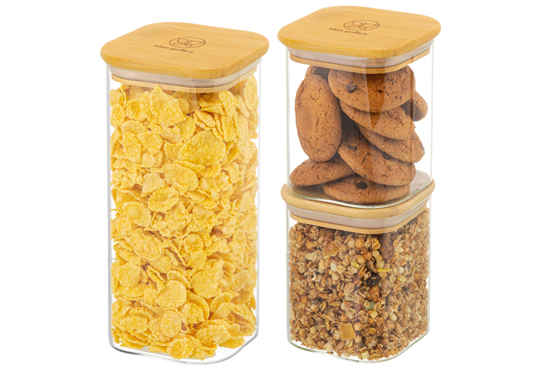 Набор состоит из 3-х банок Crystal glass разного объема: 1 банка на 1,6 литра и 2 банки по 800 мл. Банки выполнены из боросиликатного стекла и имеют крышки из натурального бамбука. Подходят для хранения риса, гречки, фасоли, муки, кофе и самых разнообразных продуктов. Стеклянные банки позволяют легко определить содержимое, экономя ваше время и позволяя вовремя пополнять запасы. Стильно выглядят и подходят для организации хранения даже на открытых полках. Крышки плотно закрываются благодаря силиконовым прокладкам. Размеры банок 10х10х21,5 см, 10х10х11,5 см, 10х10х11,5 см. Хранить вертикально. Крышки нельзя замачивать. Банки без крышек можно использовать в микроволновой печи и посудомоечной машине. Поставляются в стильной картонной упаковке. Банки Crystal glass смогут стать удобным дополнением на кухне или приятным подарком для ваших родных и близких!