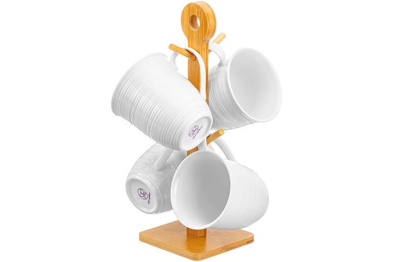 БЫЛО 1619 руб! Набор 4 кружек 400 мл "Шелк" на бамбуковой подставке
