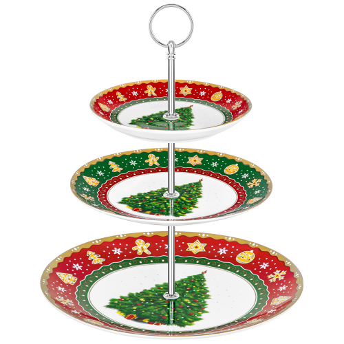 БЫЛО 1646 руб! Блюдо-этажерка 3-х ярусная 27*27*34 см "Новогодняя елка" NEW BONE CHINA