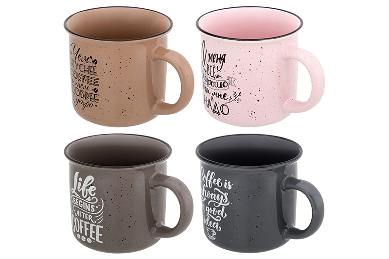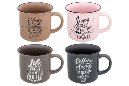 БЫЛО 1664 руб! Набор кружек 4 пр. 400 мл 13*9,5*8,8 см "Кофе" разноцветный, фарфор NEW BONE CHINA
