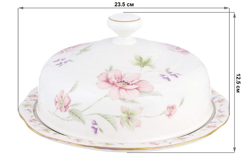 Блинница с крышкой Elan Gallery "Диана" размером 23,5х23,5х12,5 см выполнена из фарфора нового поколения new bone china и украшена нежным рисунком с цветами. Внутренний диаметр тарелки под крышкой 19,5 см. Высота без крышки 2,5 см. Можно использовать не только для хранения блинчиков и оладий, но и подачи печенья, кусочков торта и пирога. Фарфор new bone china сочетает в себе изящность и высокую прочность. Плотная структура материала позволяет посуде дольше сохранять температуру блюд и напитков. От других видов костяного фарфора new bone china отличается большей экологичностью в производстве. Под крышкой блины долго не остынут и сохранят свой первозданный вид и вкус. Блинница эстетично смотрится на столе и подойдёт для сервировки нарезки, бутербродов и выпечки. Блюдо с крышкой можно использовать для подачи сыра, шашлыка, пиццы, а также фруктов, десерта и разноса любых закусок на празднике. Фарфоровая посуда отличается от керамической повышенной плотностью. Фарфор не впитывает цвет продуктов и не деформируется от влаги, чему может быть подвержена керамика. Не рекомендуется применять абразивные моющие средства. Из-за золотого канта нельзя использовать в посудомоечной машине и микроволновой печи. Тарелка поставляется в стильной картонной упаковке. На крышечке имеется технологическое отверстие, не является браком. Красивый кухонный инвентарь – отличный подарок для любой хозяйки! Сервировочное блюдо станет украшением вашего стола как на праздник, так и в будни и поможет сохранить тепло и аромат продуктов.
