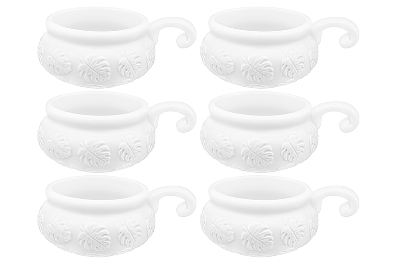 Набор 6 жюльенниц-кокотниц от бренда Elan Gallery "Тропики" выполнен из белого фарфора и украшен рельефными узорами. Размер каждой жюльенницы – 14х10,5х5,5 см, объём – 300 мл. Глубокую фарфоровую форму можно использовать для приготовления жюльена, а также для выпекания разнообразных десертов, кондитерских и кулинарных изделий. Красивую жюльенницу с приготовленным блюдом можно сразу подавать на стол, использовать для сервировки порционных блюд. Фарфоровая посуда отличается от керамической повышенной плотностью. Фарфор не впитывает цвет продуктов и не деформируется от влаги, чему может быть подвержена керамика. Не рекомендуется применять абразивные моющие средства. Можно использовать в микроволновой печи, посудомоечной машине и для запекания в духовом шкафу при температуре до 230 градусов. Станет приятным подарком на любой праздник. Поставляется в стильной коробке, благодаря которой не потребуется дополнительная подарочная упаковка. В коллекции бренда Элан Галерея можно найти много красивой посуды, кухонного инвентаря и товаров для дома. Серия "Тропики" позволит собрать сервиз в едином стиле и станет настоящим украшением вашей кухни!