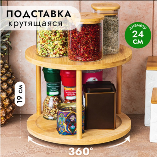 БЫЛО 1840 руб! Подставка 2-уровневая 24,5*24,5*19,5 см, многофункциональная, вращающаяся, бамбук