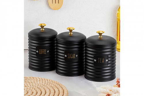 БЫЛО 1867 руб! Набор 3 банок для сыпучих продуктов 1,5 л 11,2*11,2*19 см "Tea, coffee, sugar" с крышками, молочный