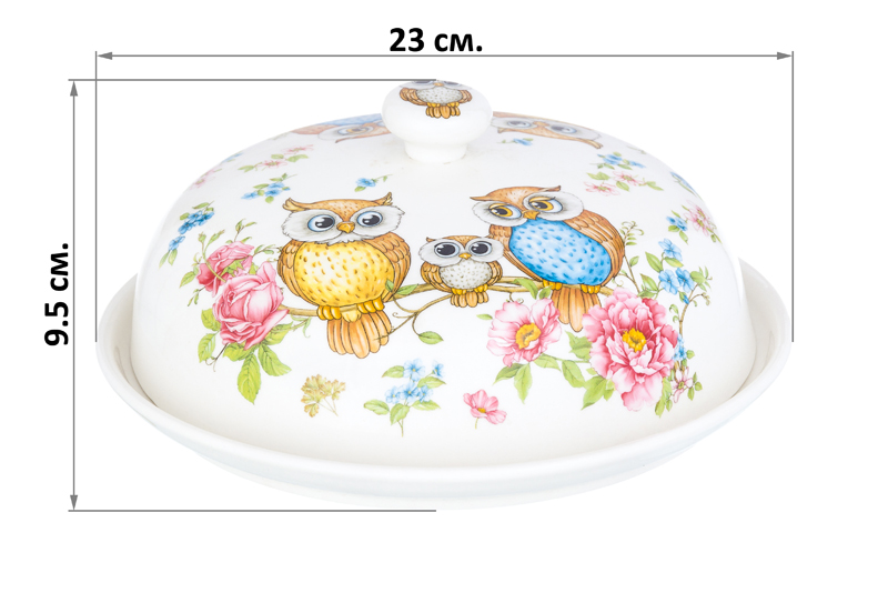 Блинница из серии «Совушки» от Elan Gallery предназначена для эстетичной сервировки вашего стола. Размер изделия – 23х23х9,5 см. Высота без крышки – 2 см. Внутренний диаметр тарелки (под крышкой) – 18,7 см. Выполнена из фарфора нового поколения new bone china, сочетающего в себе изящность и высокую прочность. За счёт гладкости изделия легко отмываются, поэтому сохраняют привлекательный внешний вид и практичны в использовании. Плотная структура материала позволяет посуде дольше сохранять температуру блюд и напитков. От других видов костяного фарфора new bone china отличается большей экологичностью в производстве. Поверхность изделия украшает забавный рисунок: две совы и маленький совёнок с большими глазами сидят на ветке дерева. Нежные бутоны розовых и голубых цветов, а также растительный узор на фоне придают композиции сказочности и тепла. Блинница подойдёт для подачи не только блинчиков и оладий, но и печенья, кусочков торта и пирога. Под крышкой блины долго не остынут и сохраняют свой изначальный вкус и вид. Блюдо также подойдёт для сервировки сырной и мясной нарезки, бутербродов, шашлыка и кусочков пиццы. Эстетично преподнесите в ней фрукты, десерты и другие праздничные закуски. Благодаря лаконичному дизайну она гармонично впишется в интерьер любой кухни, столовой и гостиной. Не рекомендуется применять абразивные моющие средства. Подходит для использования в посудомоечной машине и микроволновой печи. Поставляются в дизайнерской картонной коробке – благодаря ей вам не потребуется дополнительная подарочная упаковка. Фарфоровая сервировочная посуда будет оригинальным подарком для хозяйки, ценящей не только практичность, но и привлекательность. Серия «Совушки» от бренда Элан Галерея станет украшением любого кухонного инвентаря и позволит собрать красивый сервиз в едином стиле!