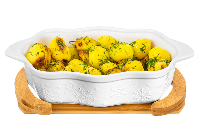 Блюдо на подставке “Снежинки” предназначено для запекания и сервировки. Размер изделия – 32х20х14 см, объём – 1,5 литра. Высота без крышки – 7,5 см, внутренний размер – 25х18 см. Выполнено из высококачественного белого фарфора и украшено рельефным узором в виде снежинок. Фарфор легко отмывается и не впитывает цвет продуктов. Блюдо послужит в качестве декоративной тарелки для подачи горячих угощений, закусок и десертов. Подайте к столу домашний жульен, мясные блюда и цыплёнка табака. Стеклянная крышка надолго сохранит тепло готовых угощений. Ручки обеспечат удобство при переносе. Не рекомендуется применять абразивные моющие средства. Изделие без крышки и подставки можно использовать в микроволновой печи, посудомоечной машине, а также в духовом шкафу при температуре до 230 градусов. Поставляется в красивой картонной упаковке. Оно станет прекрасным подарком на Новый год или Рождество и стильным дополнением вашего кухонного инвентаря. Новогодняя серия “Снежинки” отлично подойдёт для сервировки стола в зимние праздники и поможет создать атмосферу уюта.