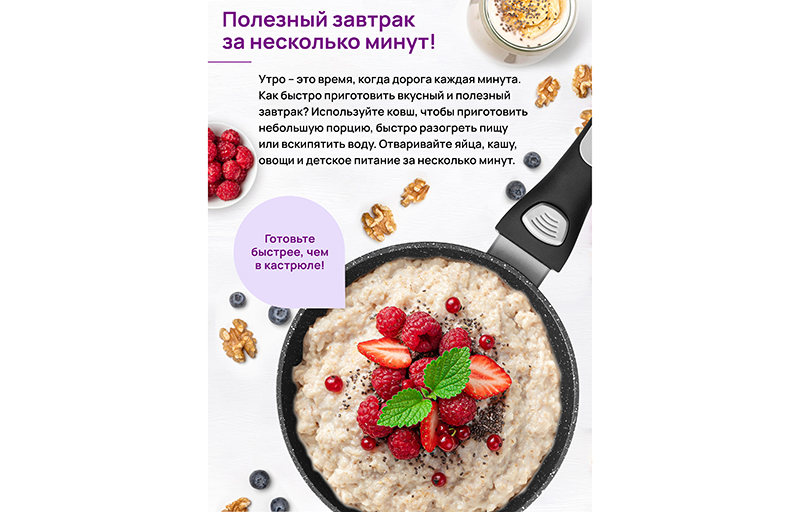 Ковш «Чёрный мрамор» из серии Fierra имеет размер 36,5х19,5х13,5 см и объём 1,5 литра. Высота изделия без крышки – 8 см, диаметр дна – 15 см, диаметр индукционного дна – 13,5 см. Длина ручки – 16,5 см. Изготовлен из кованого алюминия, имеет ультрапрочное антипригарное покрытие PFLUON COOКMARK. Оно устойчиво к износу и царапинам, не содержит PFOA и другие вредные вещества. Изделие равномерно нагревается и распределяет тепло, благодаря чему продукты к нём надолго сохраняют сочность и полезные свойства. Ручка из бакелита легко снимается, без неё ёмкость легко поместится в холодильник и в духовку. Покрытие Soft touch обеспечивает дополнительный комфорт при переноске. Стеклянная крышка с тремя пароотводами позволит вам следить за степенью готовности блюд, а большая пластиковая ручка обеспечит удобство снятия. После мытья поверхность изделия моментально высыхает, и вам не придётся вытирать его или долго сушить. Алюминиевый ковш поможет в приготовлении вкусных блюд дома. Используйте его для варки супов и пюре. Приготовьте на завтрак кашу или омлет. Запеките мясо по-французски и порадуйте своих близких. Благодаря лёгкому весу удобен для повседневного использования. С помощью жаропрочного ковша вы создадите кулинарные шедевры на своей кухне. Эксплуатация: не нагревайте без продуктов. Ставьте посуду строго по центру источника тепла. Не используйте металлические принадлежности, пользуйтесь силиконовыми и деревянными лопатками. Без крышки и ручки можно использовать в духовом шкафу при температуре до 230 градусов. Не используйте съёмную ручку, чтобы достать раскалённую сковородку из духовки. Подходит для всех типов плит, включая индукцию. Не используйте абразивные и щелочные средства. Подходит для использования в посудомоечной машине в режиме «Эко». Красивый ковш станет отличным подарком любой хозяйке. Пополните свой кухонный инвентарь и привнесите удовольствие в процесс приготовления пищи!