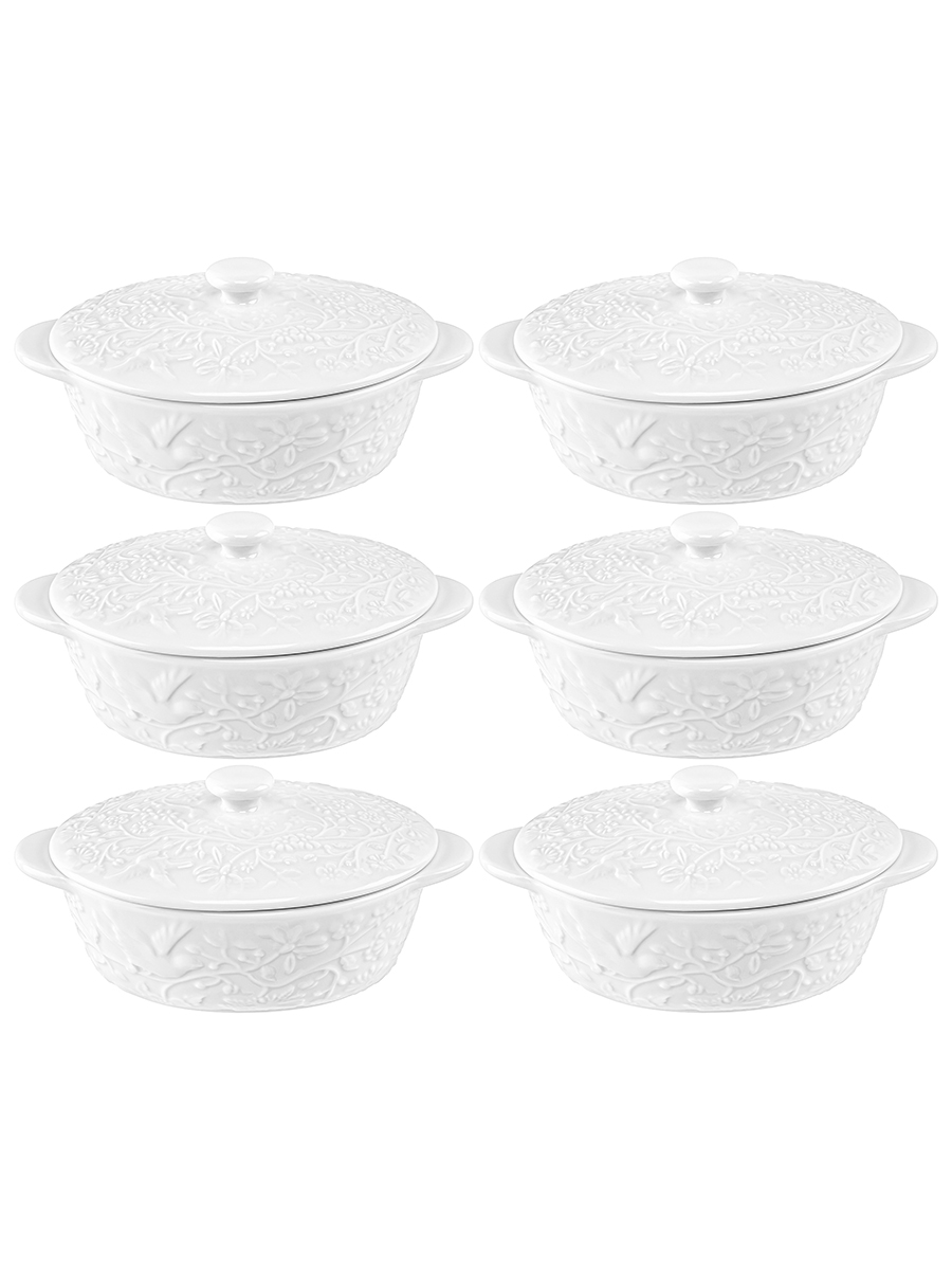 БЫЛО 2358 руб! Набор 6 жюльенниц-кокотниц 250 мл 16*10*8 см "Райский сад" с крышками, фарфор