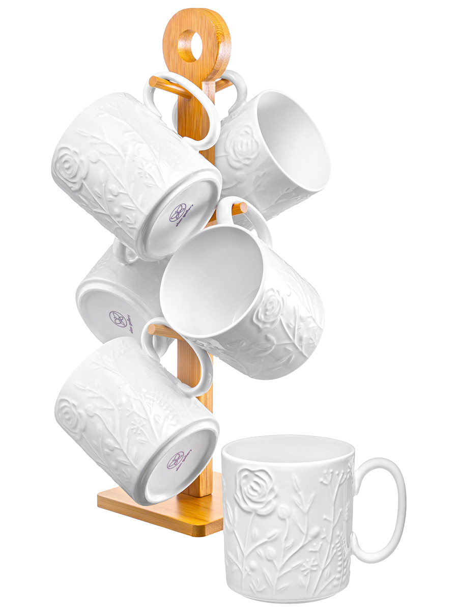 БЫЛО 2506 руб! Набор кружек 6 пр. 380 мл 12*8,5*37,5 см "Полевые цветы" на деревян. подставке