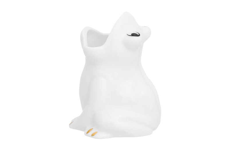 БЫЛО 270 руб! Вазочка п/зубоч. 5,5*4,8*6,5 см 30 мл "Лягушка" белая, золото