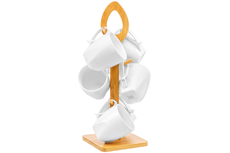 БЫЛО 2732 руб! Набор 6 кружек 300 мл 16*18*38 см "Айсберг" на дерев. подставке с ручкой